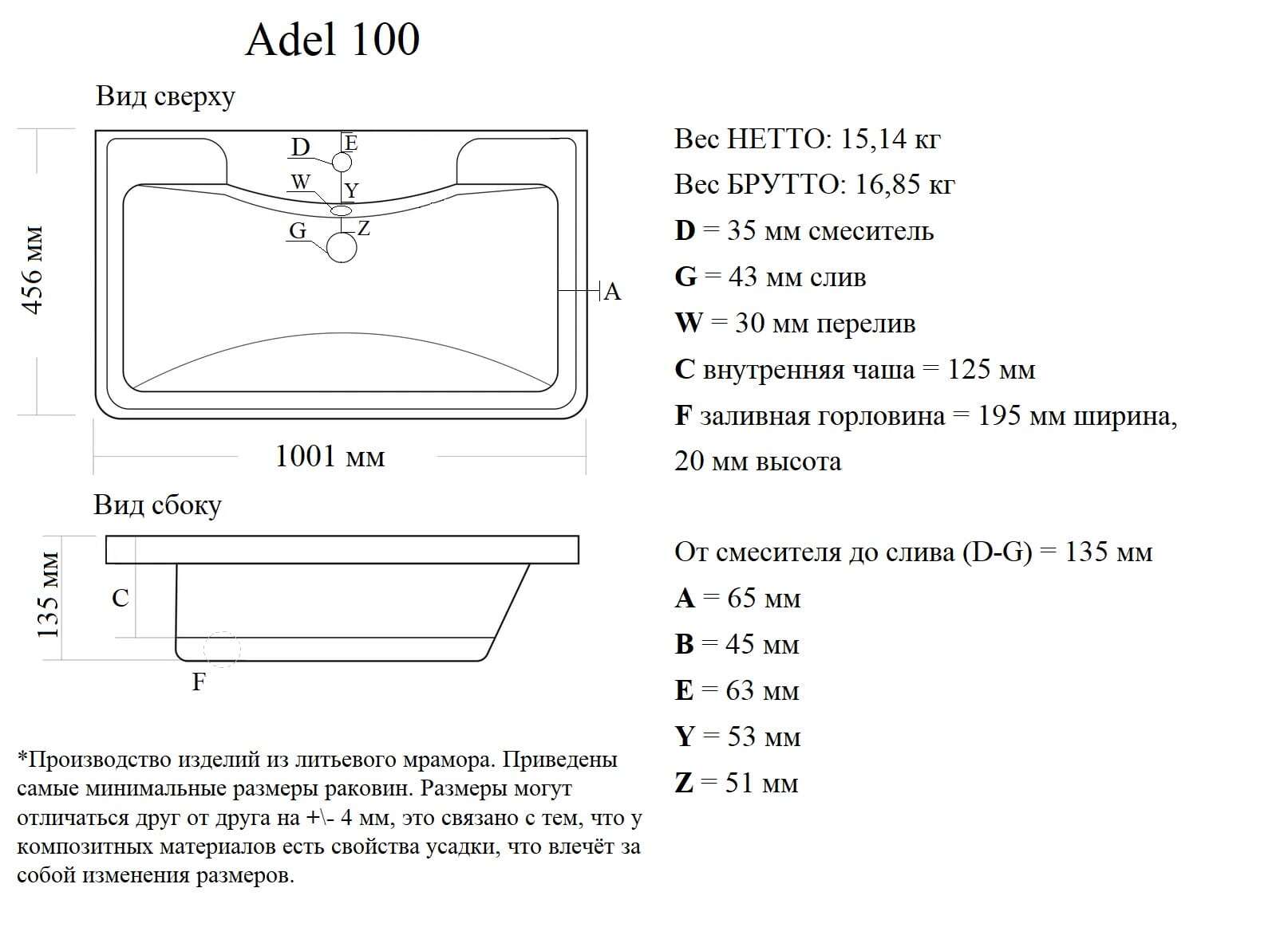 Раковина для ванной комнаты коллекции «Adel» имеет закруглёные края чаши, что создаёт современный изысканный дизайн и элегантную форму. Эстетически плавные линии на глянцевой поверхности притягивает внимание, а универсальный белый цвет сделает её украшением Вашей ванной комнаты. Сочетается с любым интерьером.