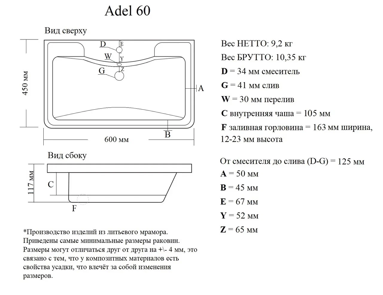 Раковина для ванной комнаты коллекции «Adel» имеет закруглёные края чаши, что создаёт современный изысканный дизайн и элегантную форму. Эстетически плавные линии на глянцевой поверхности притягивает внимание, а универсальный белый цвет сделает её украшением Вашей ванной комнаты. Сочетается с любым интерьером.