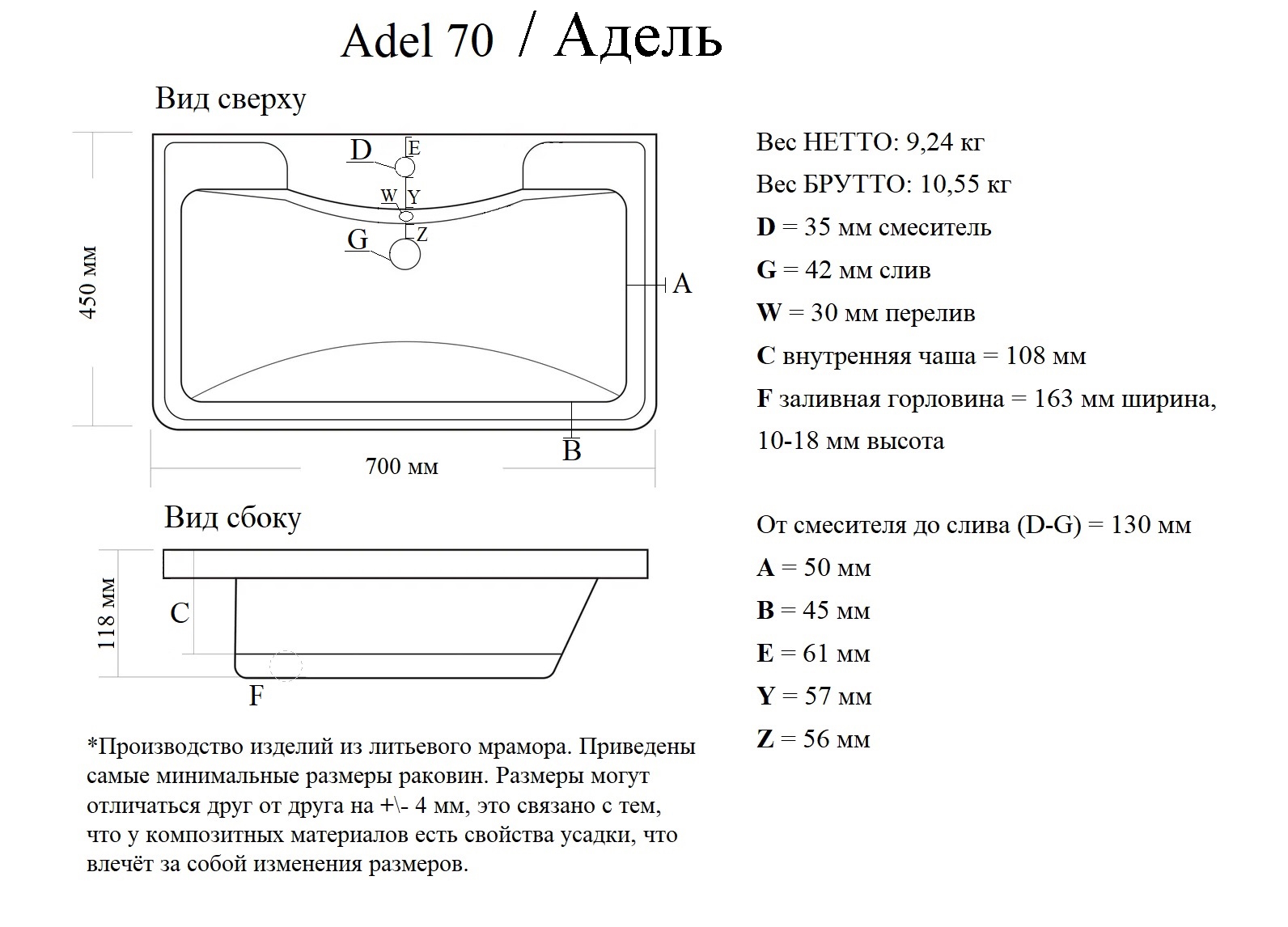 Функционально и комфортно организовать пространство позволит наличие горизонтальной поверхности, на которой можно разместить умывальные принадлежности непосредственно на раковине. Выполнена из высококачественного экологически безопасного материала – литьевой мрамор.