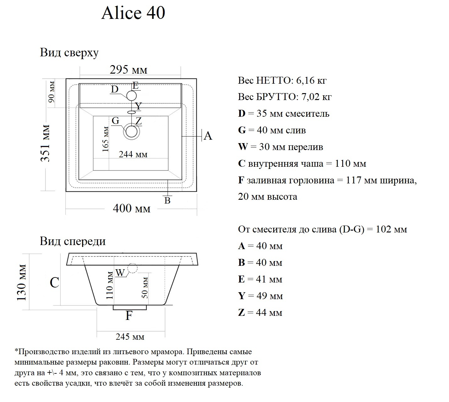 раковин из литьевого мрамора
