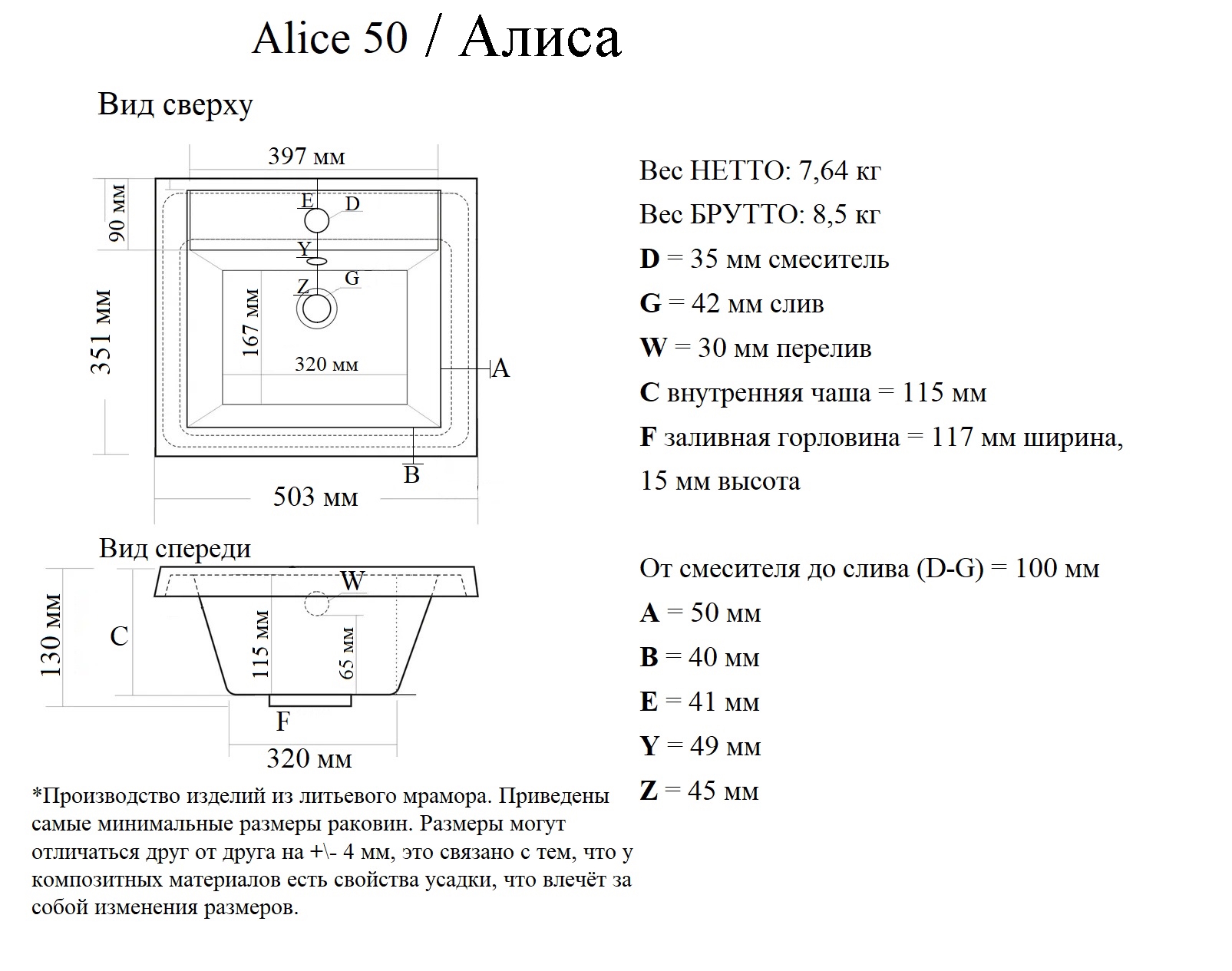 Раковина для ванной комнаты коллекции «Alice»/АЛИСА имеет современный изысканный дизайн и элегантную форму. Эстетически ровные линии предают раковине благородные нотки и в любом размере идеально впишется в Ваш интерьер.