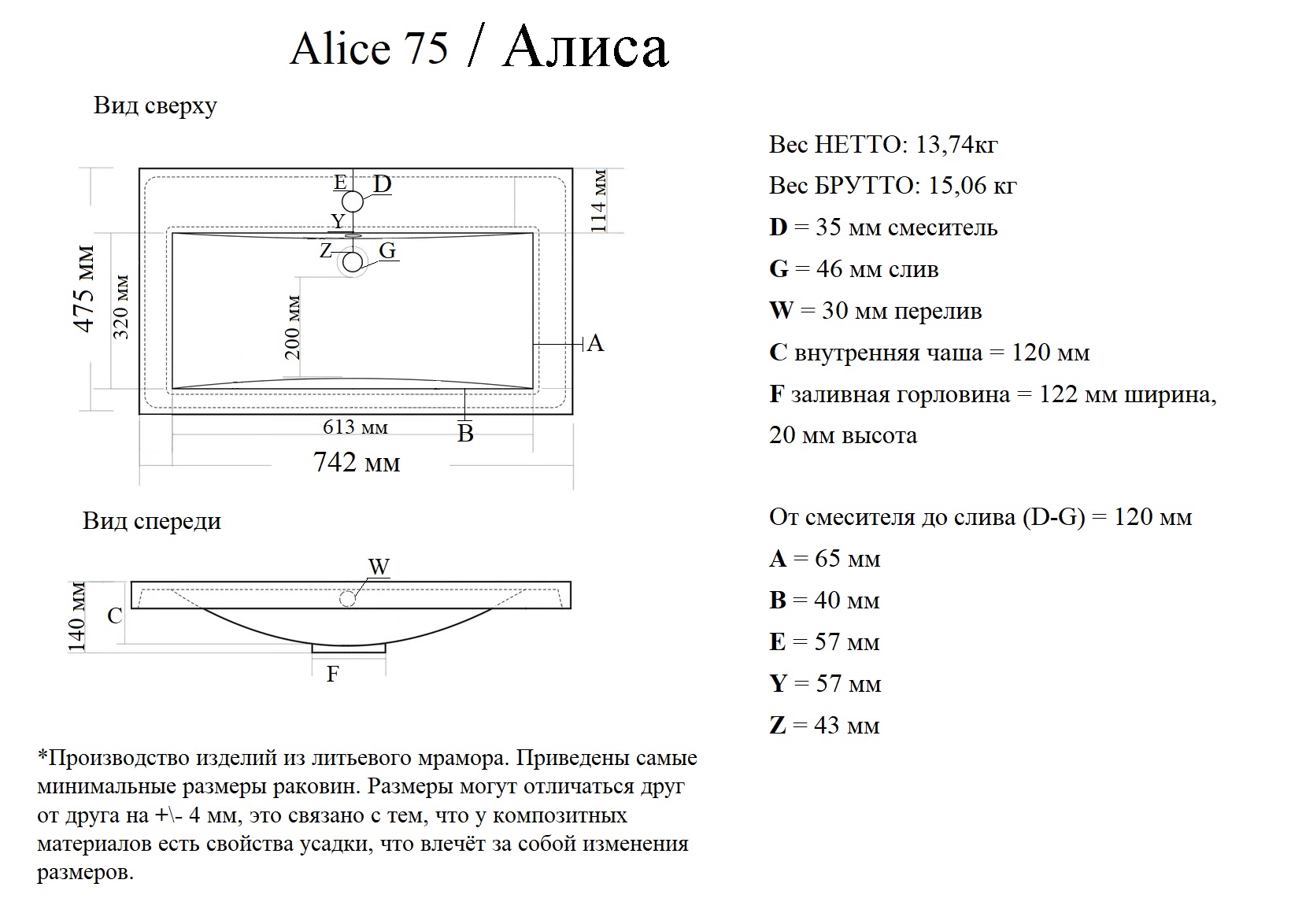 Функционально и комфортно организовать пространство позволит наличие горизонтальной поверхности, на которой можно разместить умывальные принадлежности непосредственно на раковине. Возможно несколько вариантов установки: на кронштейны, на мебельную тумбу, на столешницу. Выполнена из высококачественного экологически безопасного материала — литьевой мрамор.
