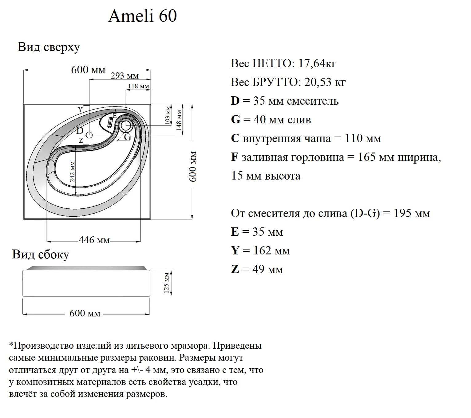 Сочетается с любым интерьером благодаря эстетическому и практичному дизайну. Выполнена из высококачественного экологически безопасного материала — литьевой мрамор.