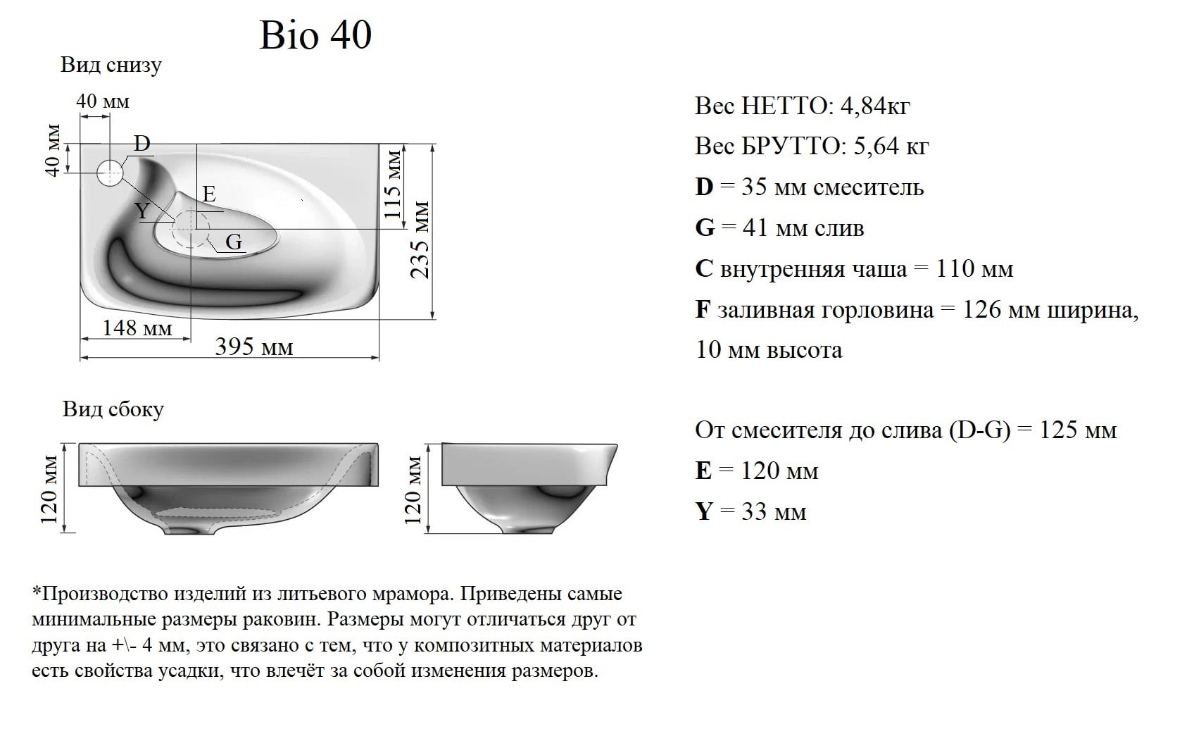 Раковина выполнена из высококачественного экологически безопасного материала — литьевой мрамор.