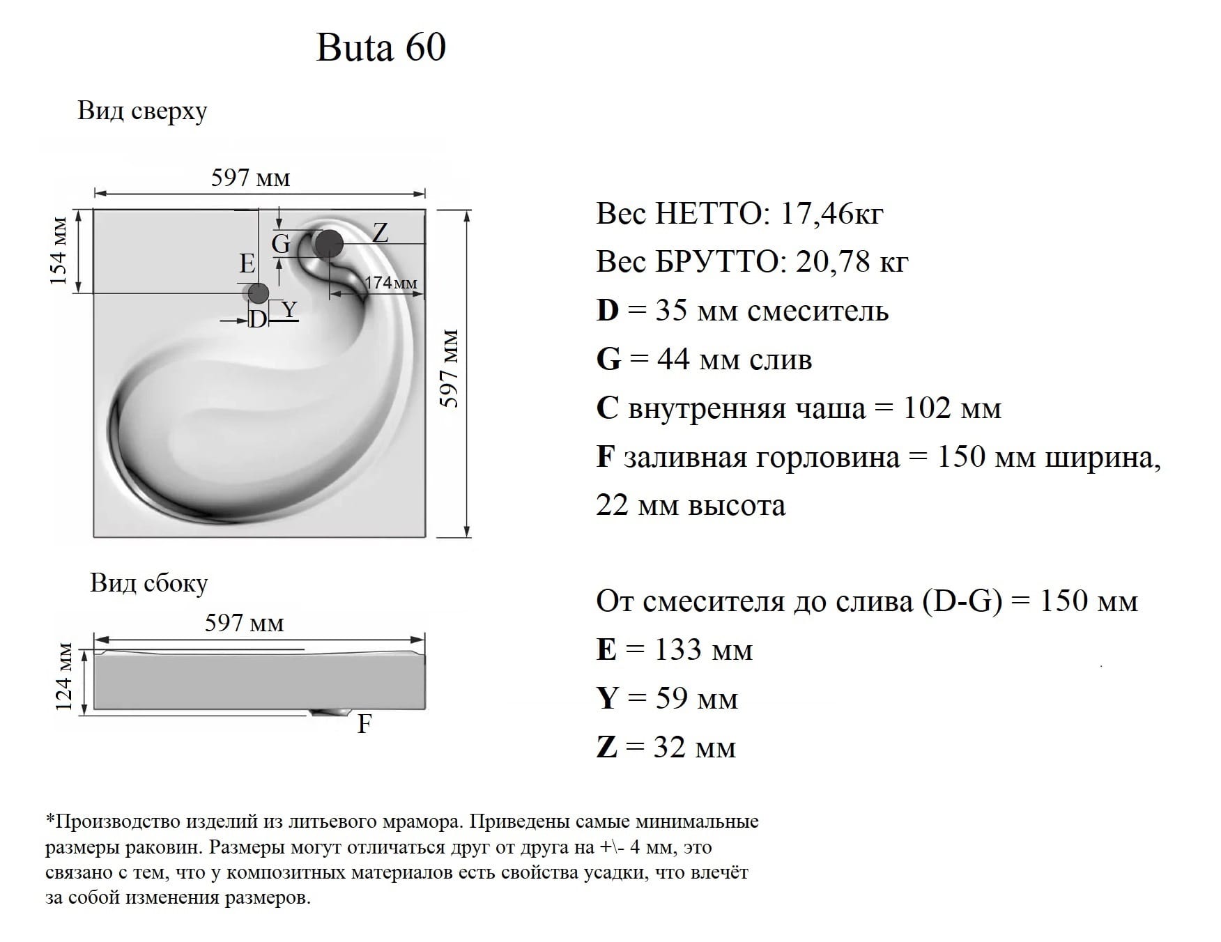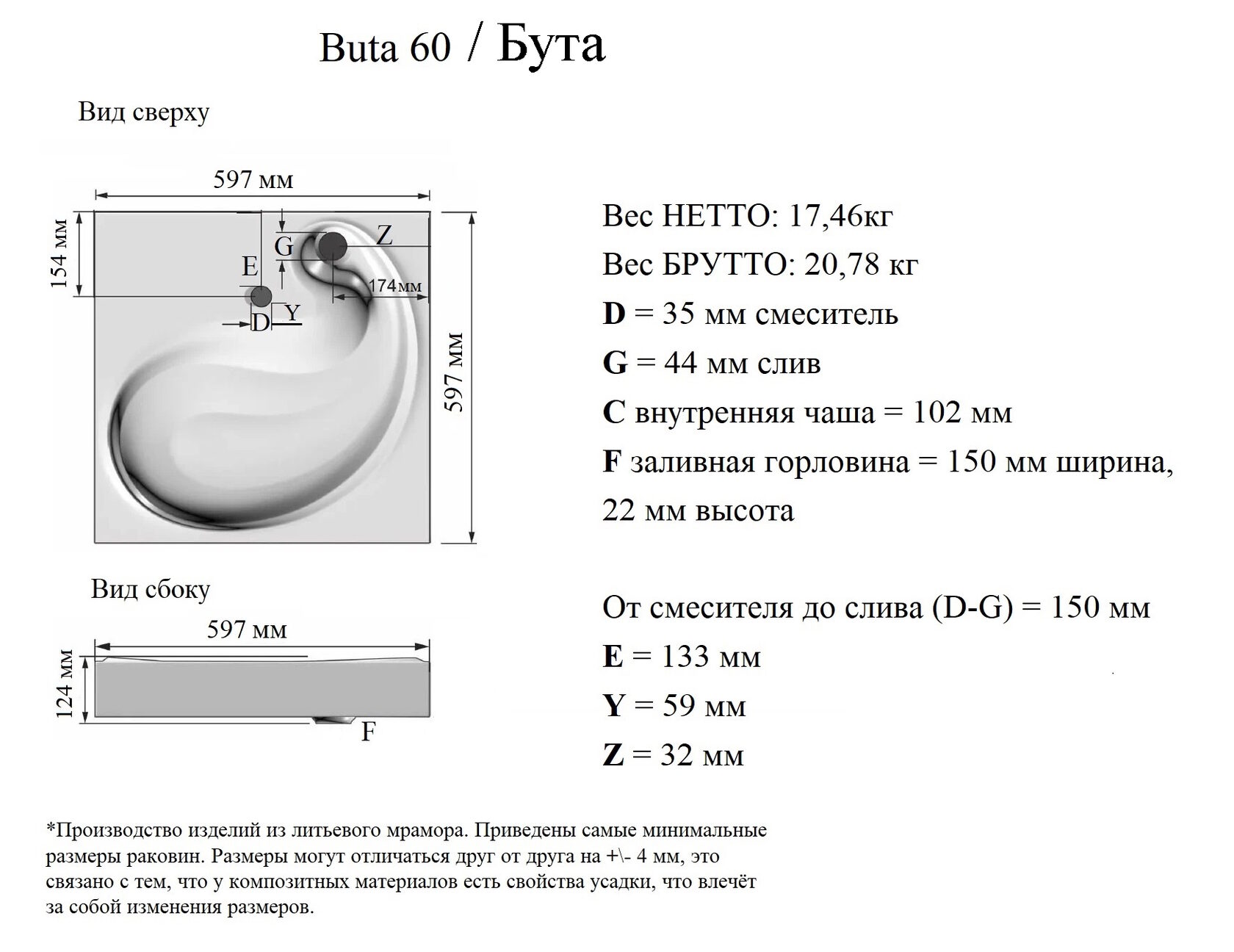 Поверхность изделия — сантехнический гелькоут европейского производства, тёплый на ощупь, имеет повышенную износостойкость и 100% восстанавливаемость. Раковина «Buta» тренд современной моды для ванных комнат.