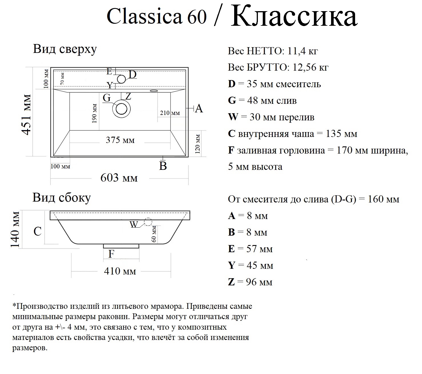 Функционально и комфортно организовать пространство позволит наличие горизонтальной поверхности, на которой можно разместить умывальные принадлежности непосредственно на раковине. А наличие нескольких вариантов размеров помогут Вам выбрать идеальную раковину для Вашей ванной комнаты. Возможные варианты установки: на кронштейны, на мебельную тумбу, на столешницу. Раковина выполнена из высококачественного экологически безопасного материала — литьевой мрамор.