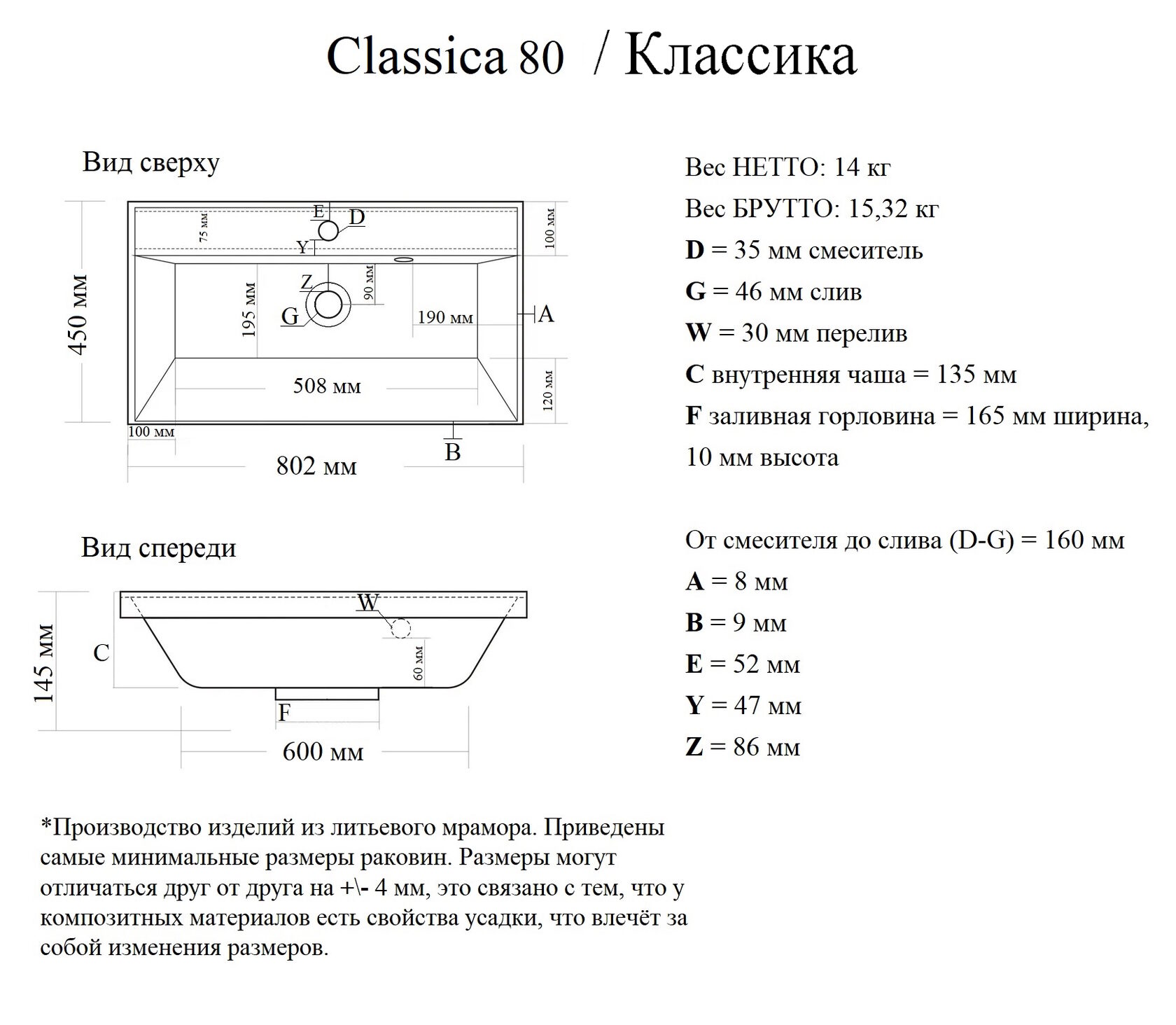 Функционально и комфортно организовать пространство позволит наличие горизонтальной поверхности, на которой можно разместить умывальные принадлежности непосредственно на раковине. А наличие нескольких вариантов размеров помогут Вам выбрать идеальную раковину для Вашей ванной комнаты. Возможные варианты установки: на кронштейны, на мебельную тумбу, на столешницу. Раковина выполнена из высококачественного экологически безопасного материала — литьевой мрамор.