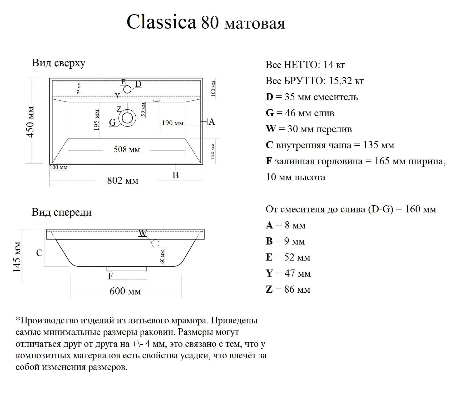 Раковина для ванной комнаты в уникальном стиле из коллекции «Classiсa» имеет матовое покрытие, а прямые практичные линии которые выглядят очень современно и эстетично прекрасно впишутся в любой интерьер.