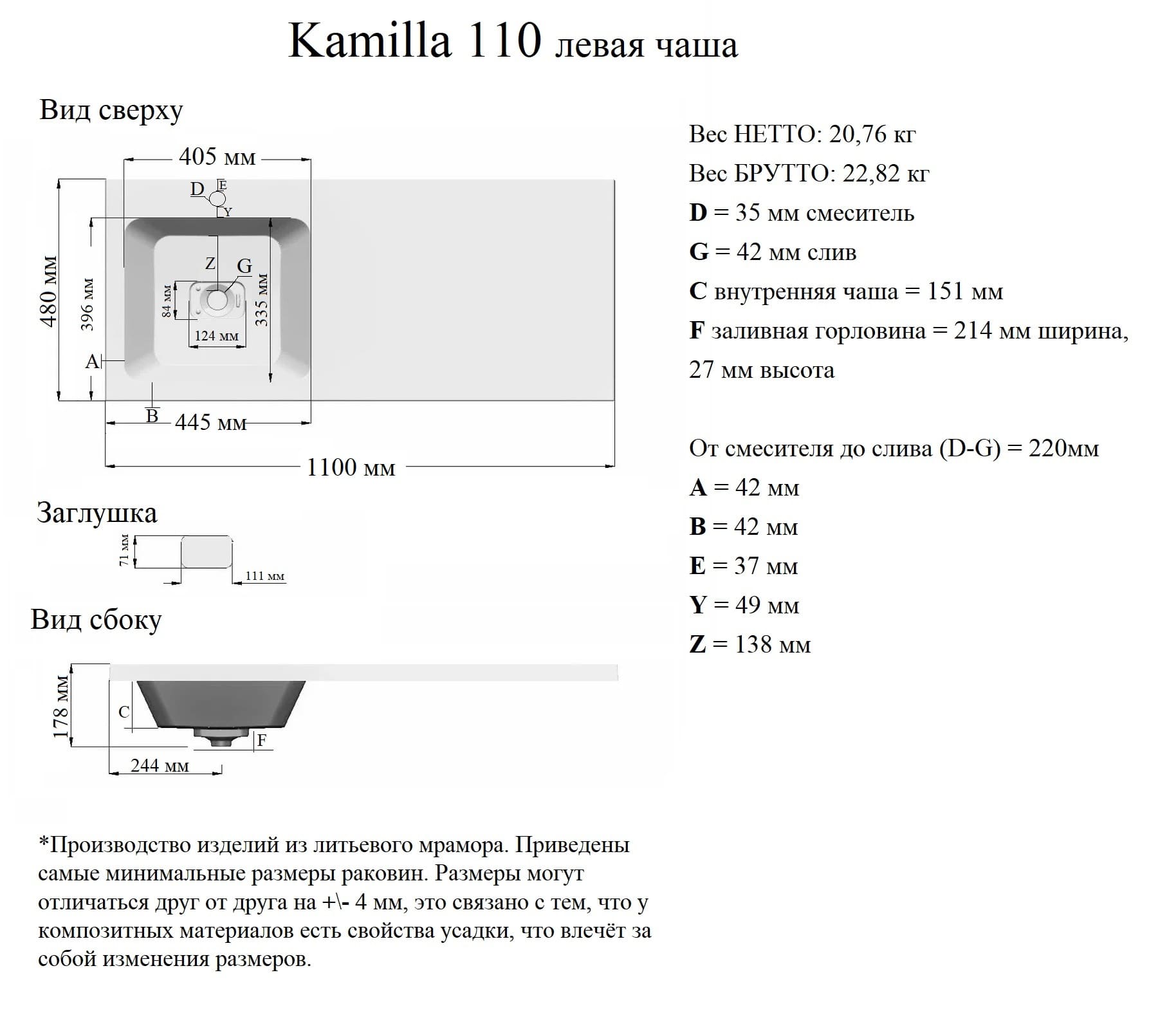 Эстетический и практичный дизайн сочетается с любым интерьером. Место слива деликатно скрыто под накладной крышкой. Возможно несколько вариантов установки: на стиральную машину, на кронштейны, на мебельную тумбу. Раковина выполнена из высококачественного экологически безопасного материала — литьевой мрамор.