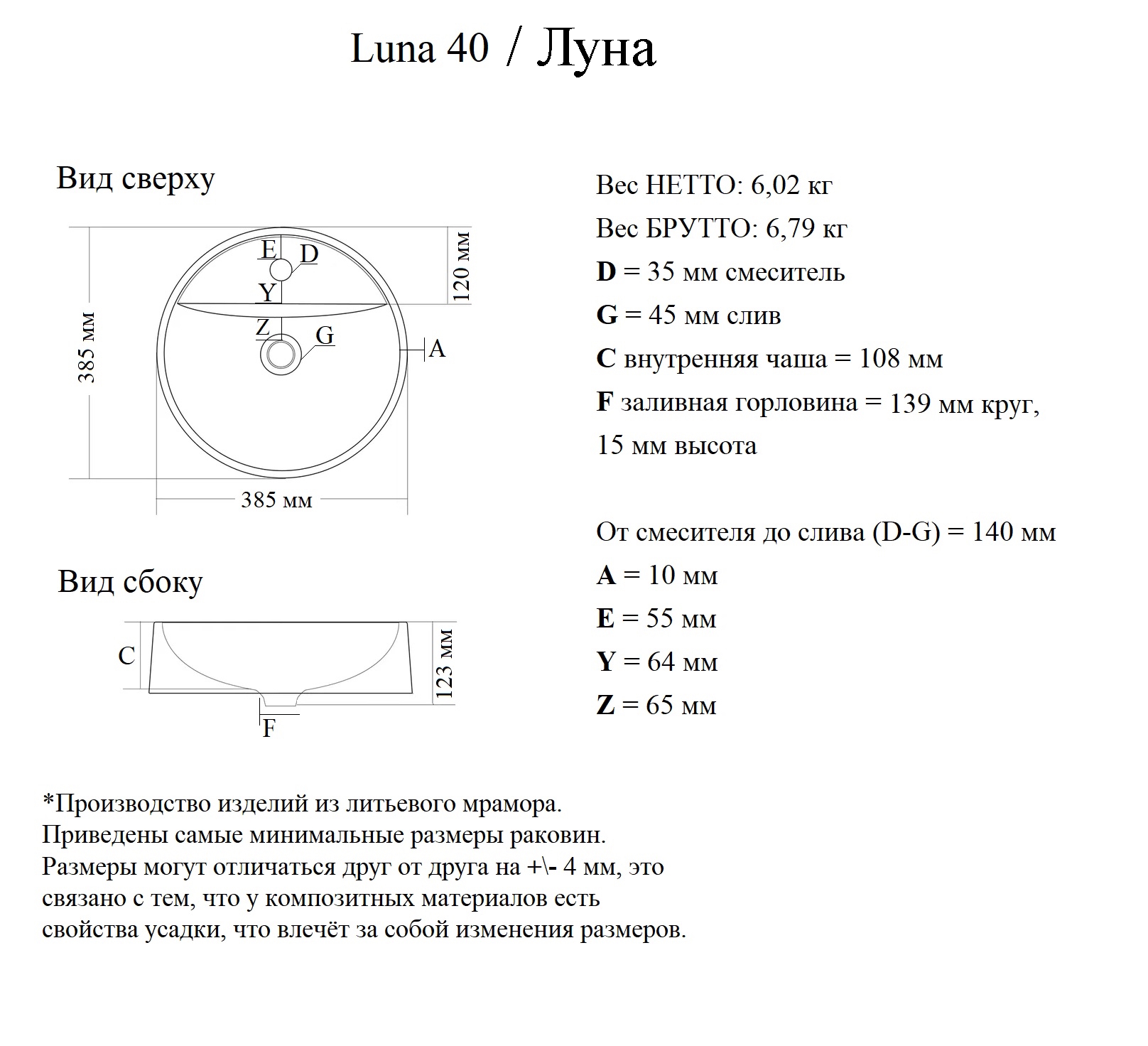 Выполнена из высококачественного экологически безопасного материала — литьевой мрамор.
