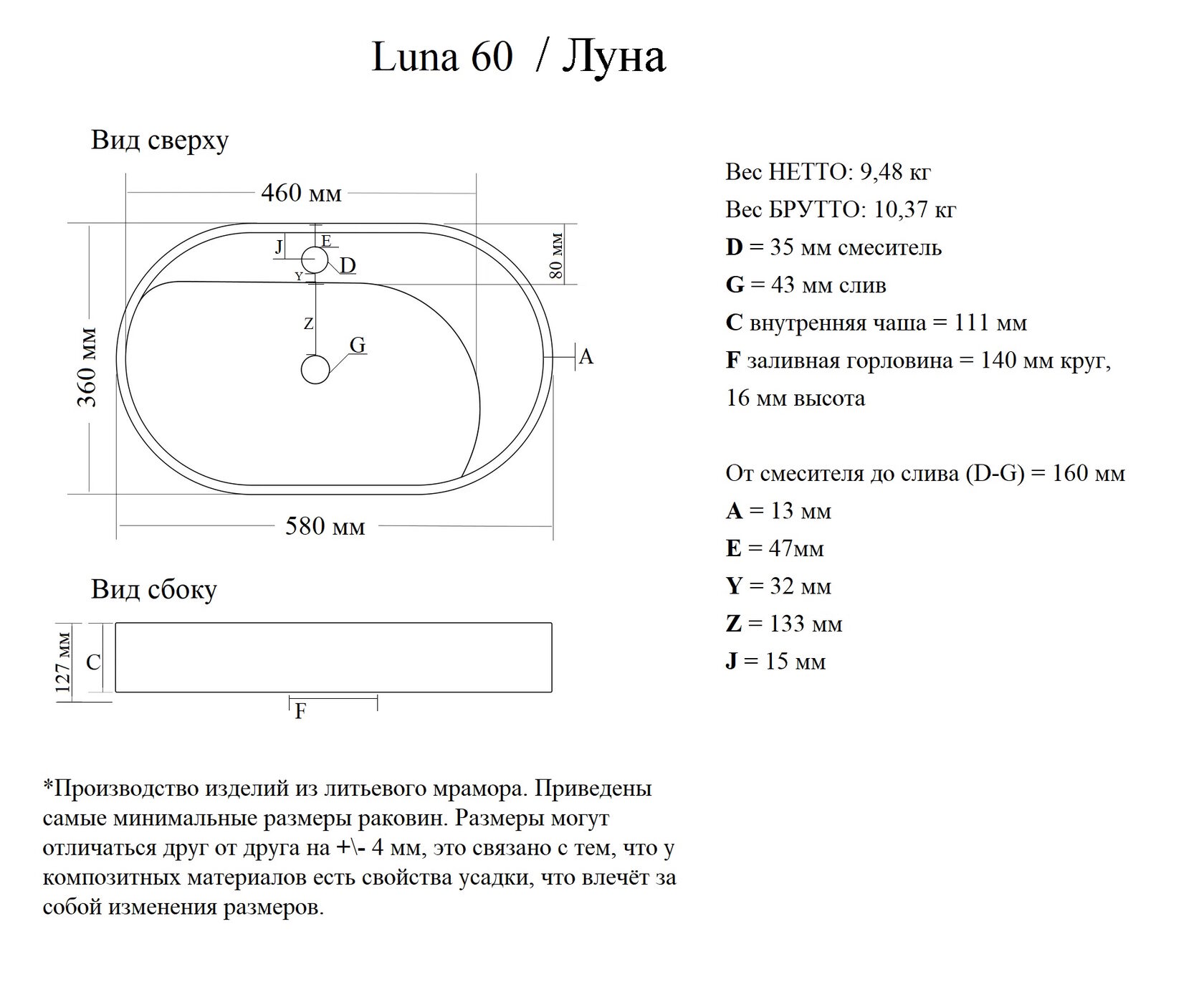 Накладная раковина для ванной комнаты коллекции «Luna»/ЛУНА имеет овальную форму создана в современном и гармоничном стиле. Эстетичный вид раковины будет сочетается с любым интерьером. Накладные раковины — это тренд современной моды для ванных комнат. Оригинальность дизайна позволяет разместить умывальные принадлежности непосредственно на раковине, что позволит функционально и комфортно организовать пространство.