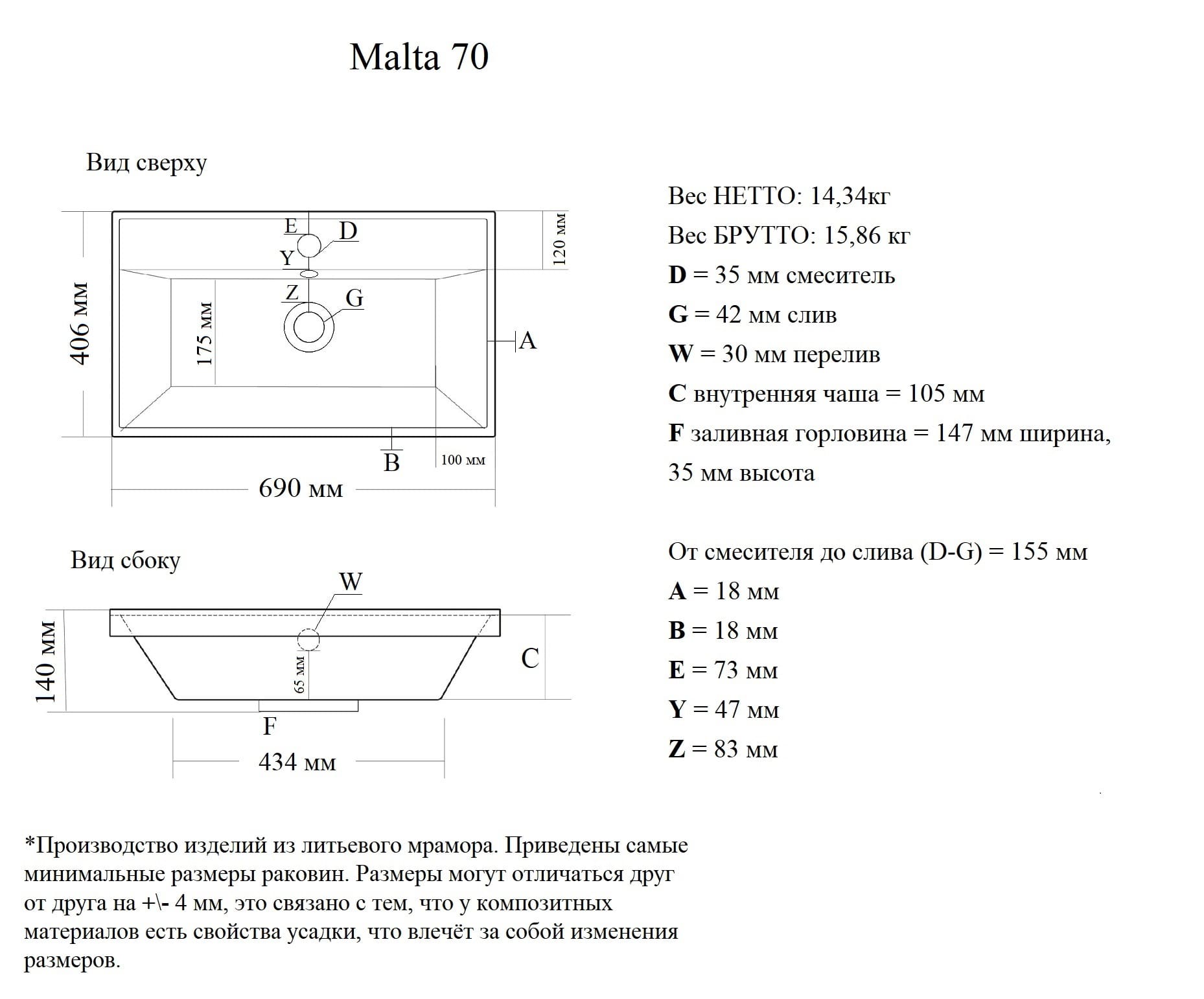 раковин из литьевого мрамора