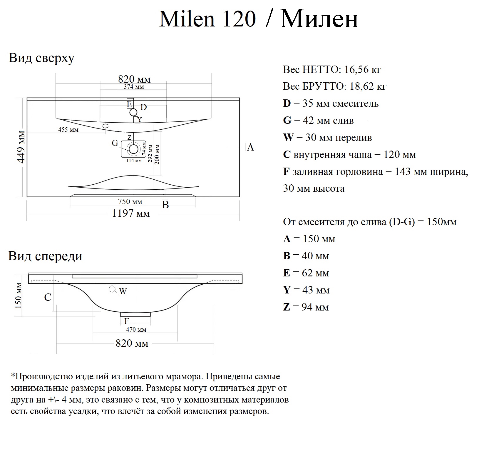 Функционально и комфортно организовать пространство позволит наличие горизонтальной поверхности, на которой можно разместить умывальные принадлежности непосредственно на раковине. Возможно несколько вариантов установки: на кронштейны, на мебельную тумбу, на столешницу. Раковина выполнена из высококачественного экологически безопасного материала — литьевой мрамор.