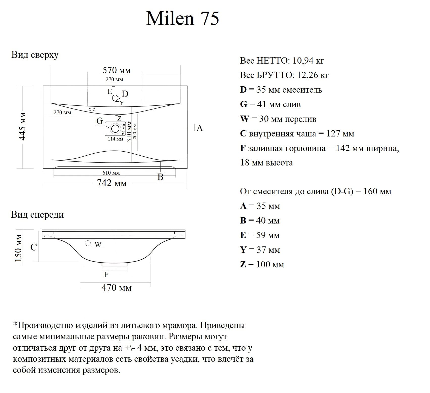 Функционально и комфортно организовать пространство позволит наличие горизонтальной поверхности, на которой можно разместить умывальные принадлежности непосредственно на раковине. Возможно несколько вариантов установки: на кронштейны, на мебельную тумбу, на столешницу. Раковина выполнена из высококачественного экологически безопасного материала — литьевой мрамор.