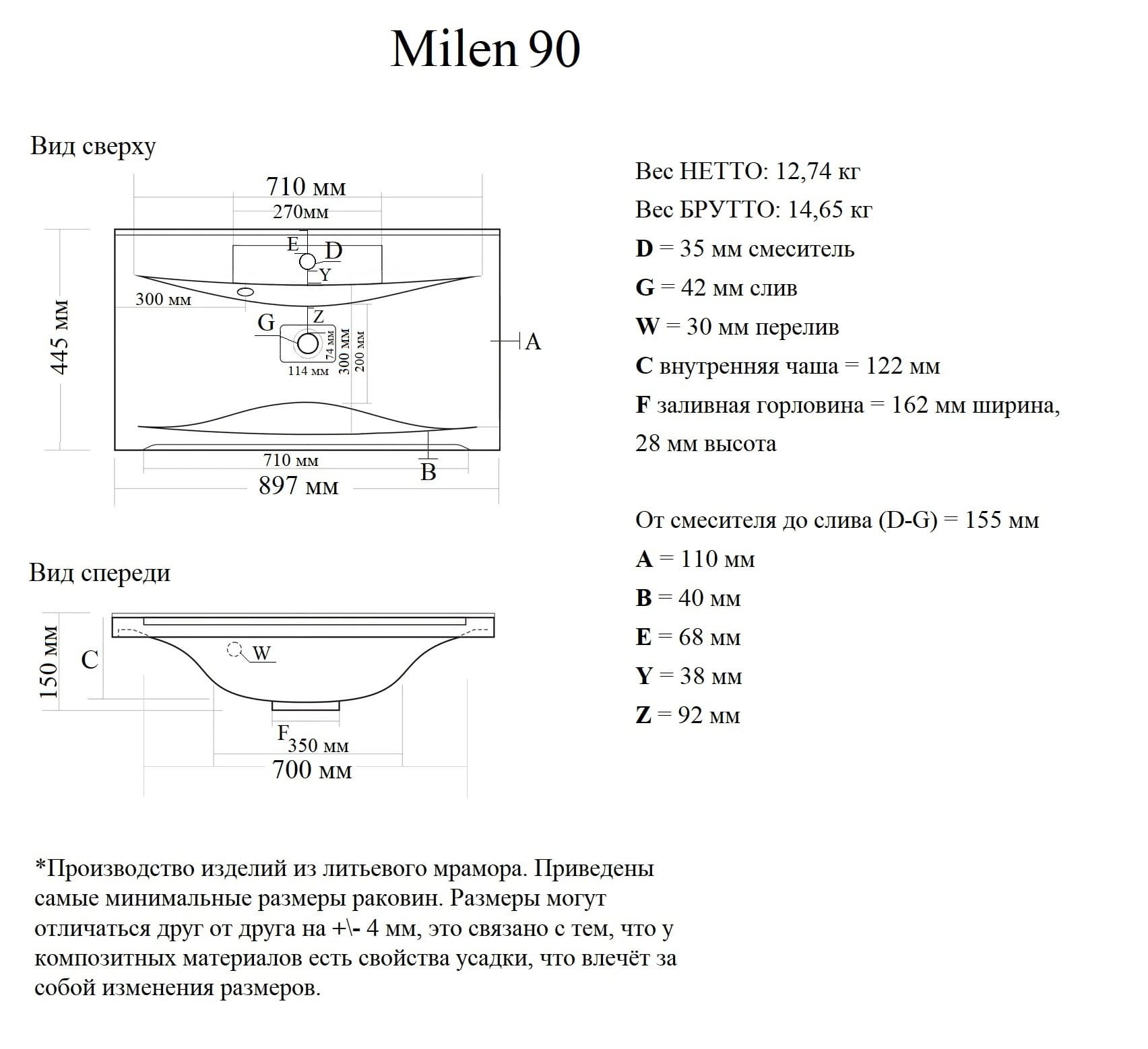 Раковина для ванной комнаты из коллекции «Milen» это современное и изысканное решение для Вашей ванной комнаты. Плавные линии этой линейки раковин подарят истинное наслаждение от использования. Благородная и спокойная форма раковины прекрасно впишется в любой интерьер. Место слива деликатно скрыто под накладной крышкой.