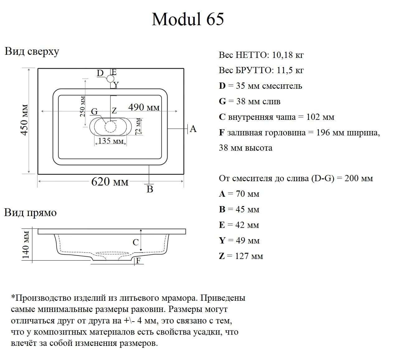 Функционально и комфортно организовать пространство позволит наличие горизонтальной поверхности, на которой можно разместить умывальные принадлежности непосредственно на раковине. Возможно несколько вариантов установки: на кронштейны, на мебельную тумбу, на столешницу. Раковина выполнена из высококачественного экологически безопасного материала — литьевой мрамор.