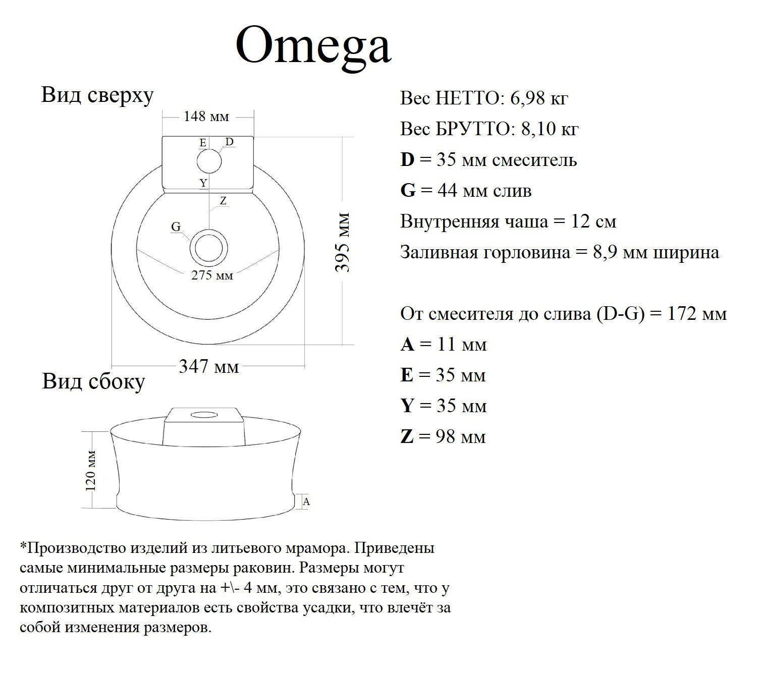 Накладная раковина для ванной комнаты «Omega» имеет современную круглую форму с отдельной полочкой для смесителя, что позволяет выделиться из толпы. Накладные раковины -это тренд современной моды для ванных комнат. Выполнена из высококачественного экологически безопасного материала — литьевой мрамор.