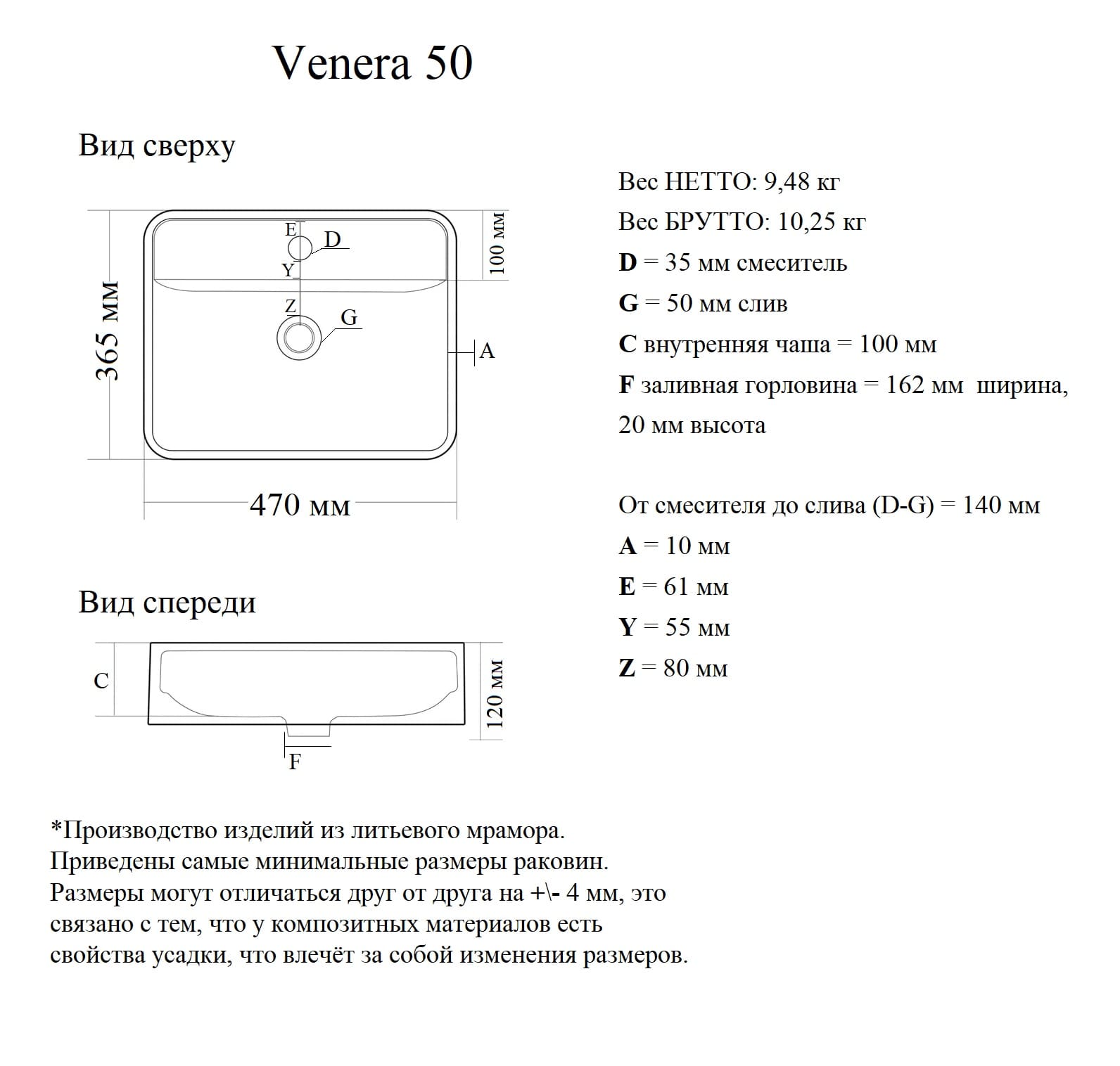 Лаконичная накладная раковина для ванной комнаты коллекции «Venera» имеет современный дизайн и практичную форму. Сэкономит пространство Вашей ванной комнаты за счёт небольших размеров. Великолепно впишется в любой интерьер благодаря гармоничным формам и глянцевому покрытию. Изделие выполнено из высококачественного экологически безопасного материала тёплого на ощупь — литьевого мрамора.